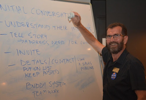 Amongst the Northern Beaches clubs, Upper Northern Beaches (UNB) stands out: Membership has nearly doubled in the last two and a half years. Tony Butera was deeply involved with this achievement at UNB - his experience and knowledge was most apparent as he led the audience on a workshop and interactive approach resulting in an action plan for club membership. He used a white board to capture the key elements of the discussion.